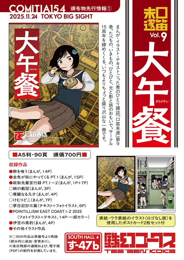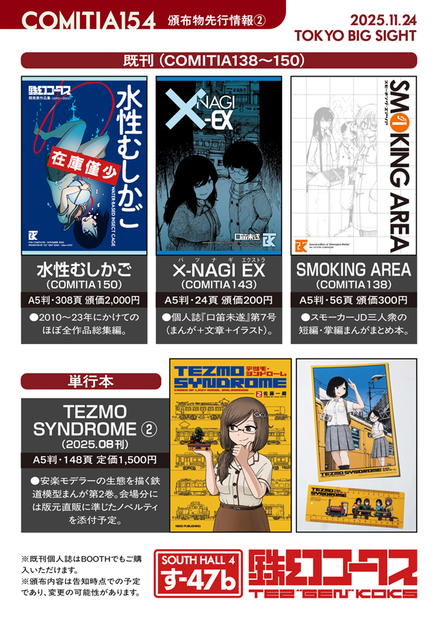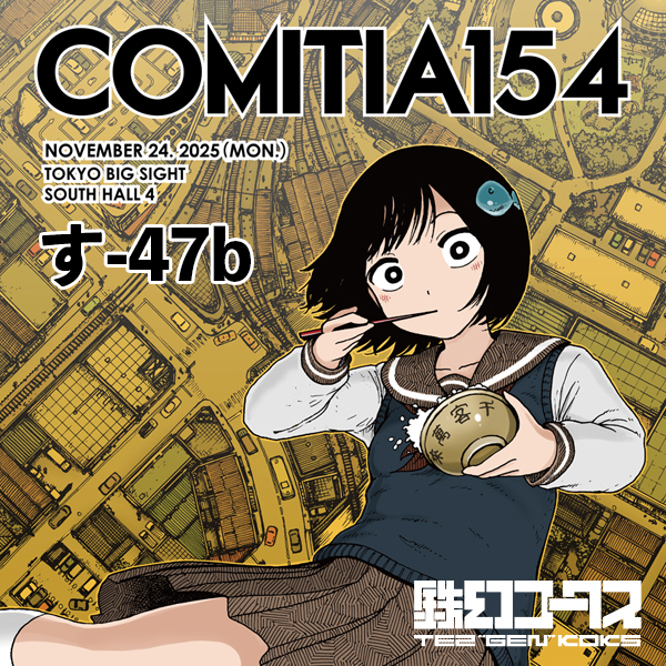 2025年11月24日のCOMITIA154(於・東京ビッグサイト)に、【す47b】『鉄幻コークス』にてサークル参加します。