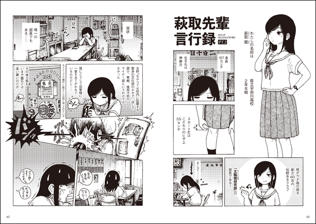 ▲架空の高校が舞台の『金魚が街にやってくる』『萩取先輩言行録』では表紙の人を含む高校生たちが出演。セーラー服の一団は過去作でも出ていましたが、今回ペーパー用にキャラ設定を固め直したので、同一の学校の生徒として周囲を掘り下げることも可能になりました。